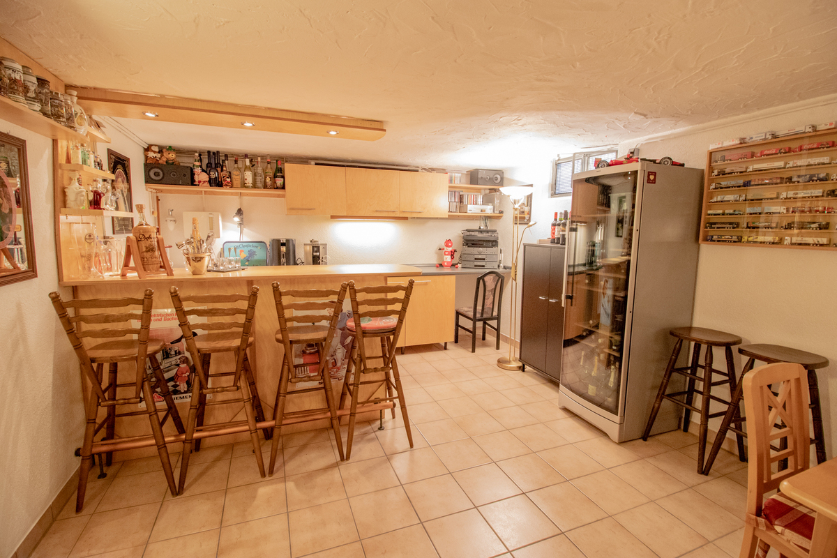 Der Keller bietet 3 voll ausgebaute Räume und weist eine Gesamtfläche von zusätzlichen 57 qm auf. Eine fertig eingerichtete Kellerbar mit Spüle und Geschirrspüler lädt hier zum Feiern mit Familie oder Freunden ein.