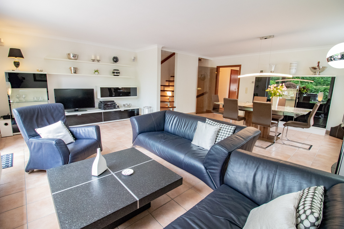 Direkt gegenüberliegend vom Hauseingang betritt man das schöne, helle Wohnzimmer mit einigen Highlights: