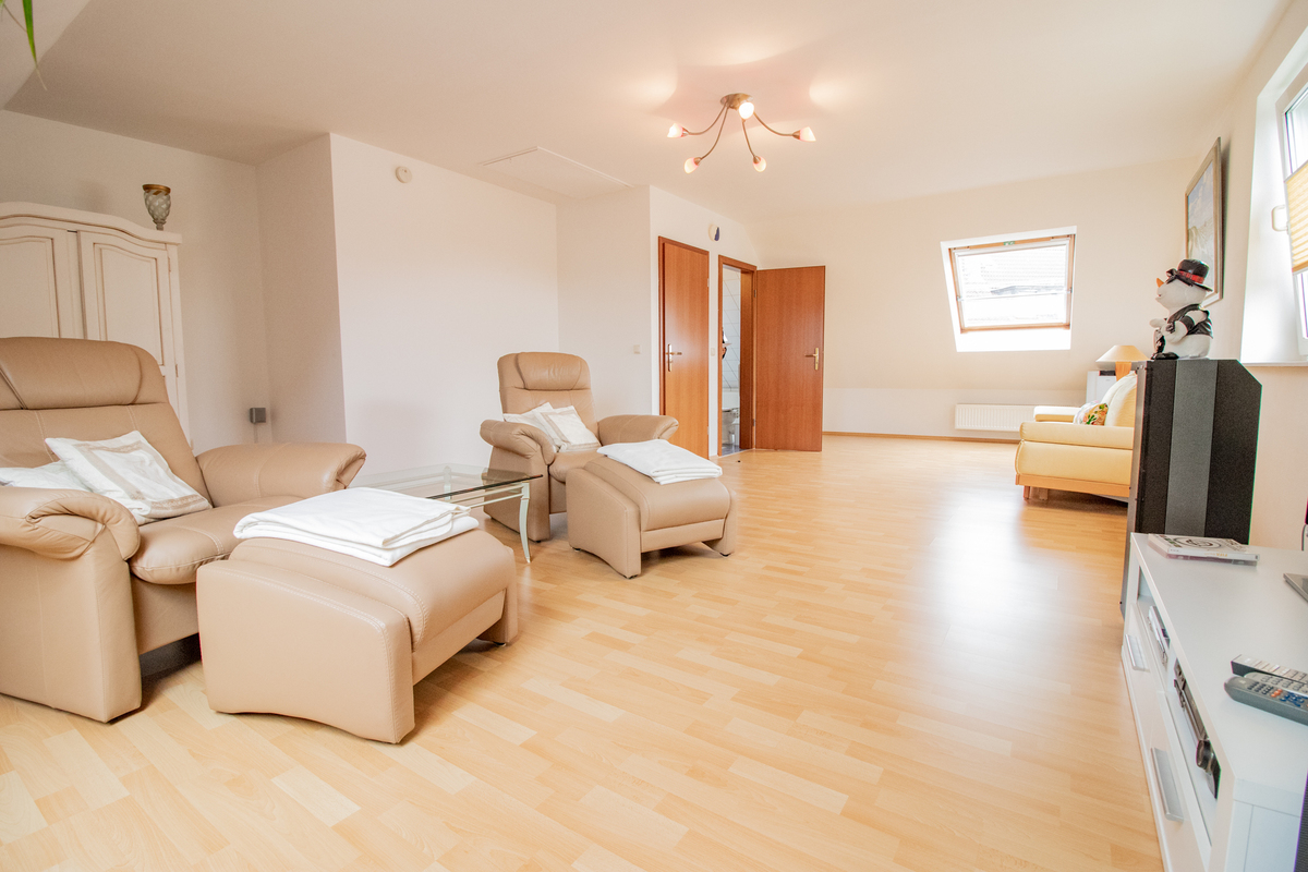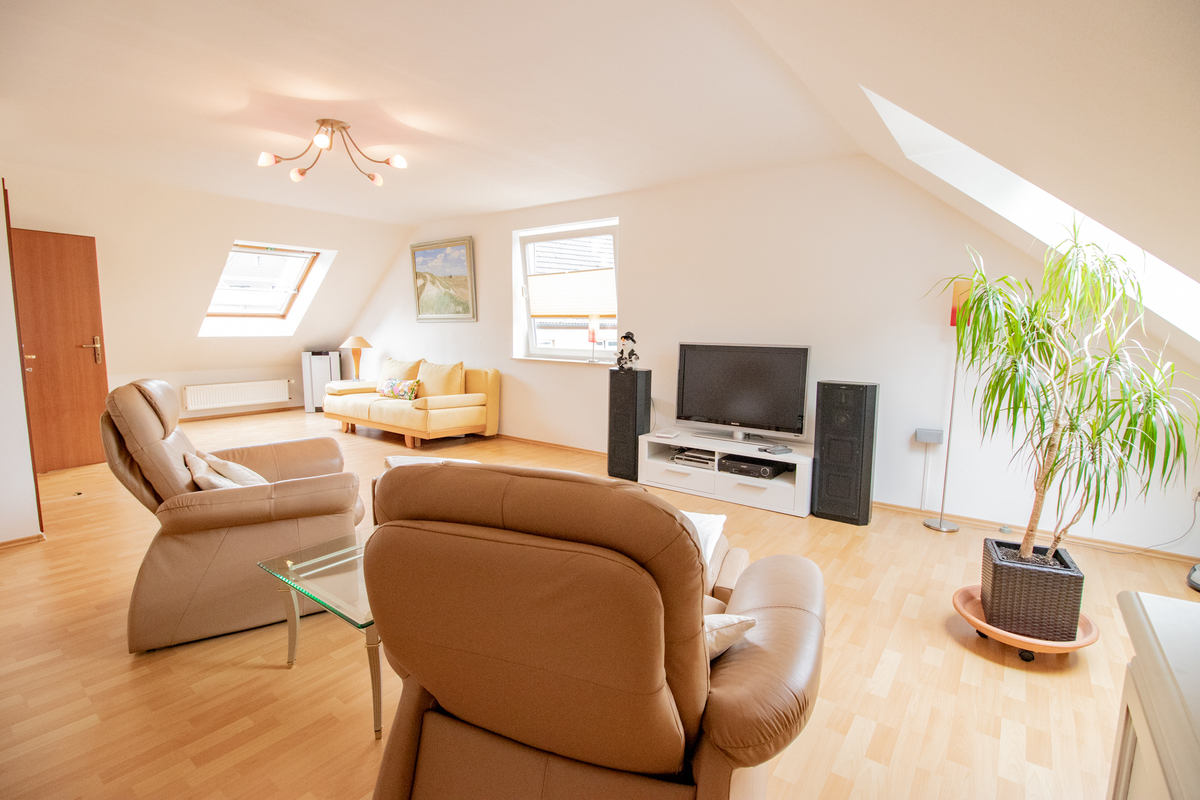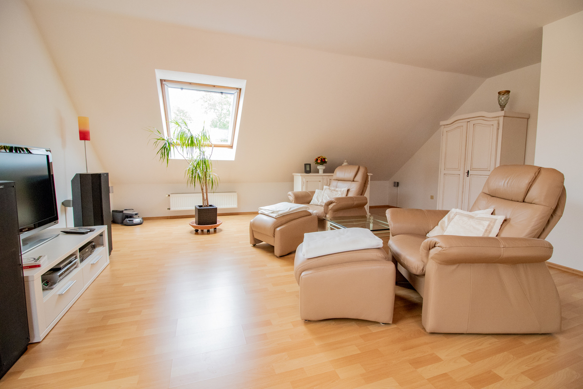 Zudem gibt es ein sehr schön ausgebautes Dachgeschoss, welches an sich schon fast wie ein einzelnes Appartement zu behandeln ist. Mit seinen großen Dachflächenfenstern und einem kleinen zusätzlichen Badezimmer mit Dusche und Dachflächenfenster ist auch das Dachgeschoss in vollem Umfang nutzbar.