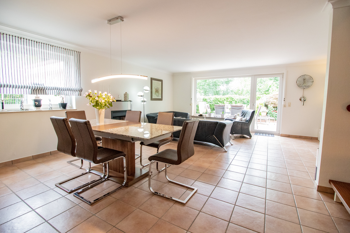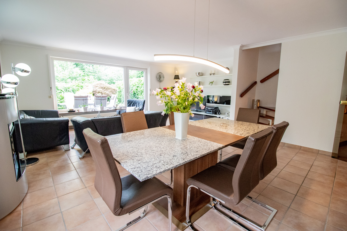 Durch eine hochwertige Glastür betritt man den großen Essbereich, ein Bio Ethanol Kamin sowie der großzügige Zugang zur ca. 30qm großen, toll ausgebauten Terrasse bieten alles, was man von einer tollen Immobilie erwartet.