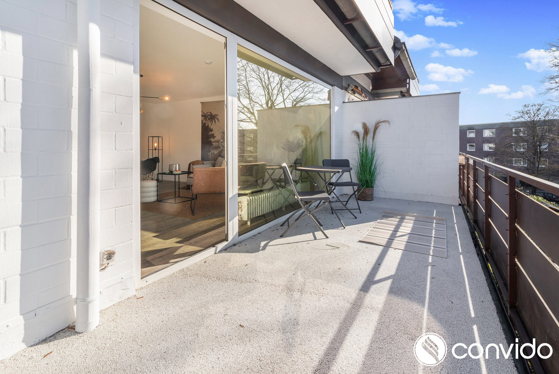 Mehr Balkon geht kaum: Die schicke 3-Zimmer-Wohnung in Düsseldorf-Wersten verfügt über zwei Balkone, sodass von fast allen Räumen der Austritt ins Freie möglich ist.