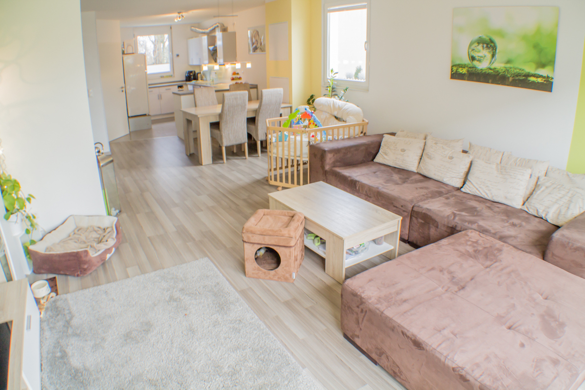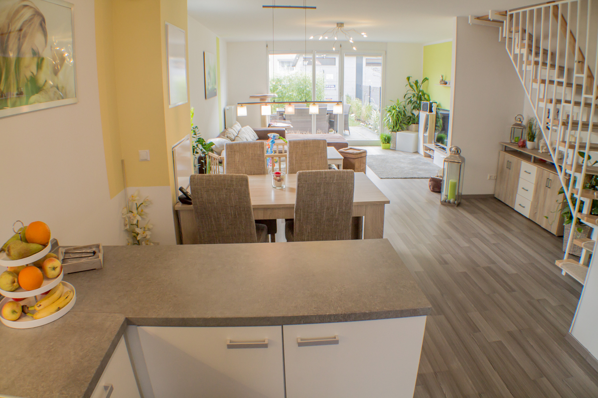 Dieses 2011 erbaute Reihenendhaus überzeugt durch hochwertige Verarbeitung, viel Platz und eine gute Energieeffizienz. Durch die freundliche Nachbarschaft, eine optimale Verkehrsanbindung sowie die Naturnähe ist diese Gegend vor allem bei Familien beliebt. Der Wohn-, Ess- und Kochbereich im Erdgeschoss ist offen gestaltet und lichtdurchflutet. Von hier aus hat man einen direkten Zugang zur Terrasse und zum sehr gepflegten Garten. Über eine offene Treppe mit Holzstufen gelangt man in das Obergeschoss. Hier finden Sie neben zwei Schlafzimmer und einem Tageslichtbadezimmer mit Wanne und Dusche genügend Abstellfläche. Im Dachgeschoss gibt es ebenfalls ein Badezimmer mit Dusche und zwei Wohn-/Schlafräume. Auf ca. 140 m² Wohnfläche, aufgeteilt auf fünf Zimmer und zwei Etagen findet jeder seinen Rückzugsort und Sie vielleicht Ihr Familienglück.