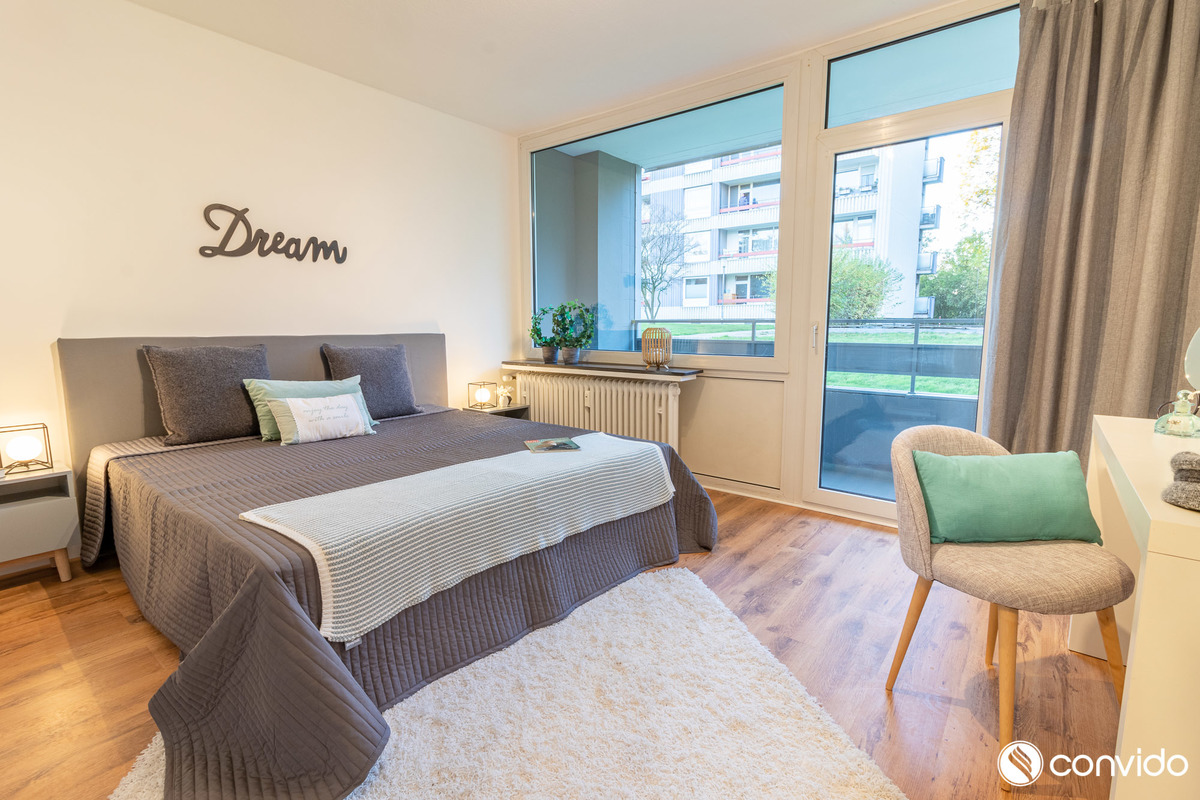 Im Wohnzimmer haben Sie einen direkten Zugang zu Ihrem ersten Balkon, der auch bequem über das Schlafzimmer erreichbar ist. Hier schauen Sie direkt auf die gepflegte Grünfläche, die vom Hausmeisterservice vor Ort in Schuss gehalten wird. Der zweite Balkon befindet sich im Kinderzimmer, dass aber nach Ihren Wünschen individuell genutzt werden kann. Das Badezimmer wurde frisch renoviert und verfügt über eine Badewanne.