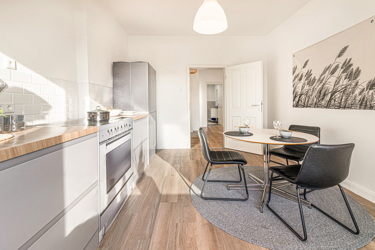 Im 1. Obergeschoss des Mehrfamilienhauses erwartet Sie eine schön geschnittene Raumaufteilung. In der Küche wurde der Fliesenspiegel erneuert und Vinylboden verlegt. Sie können hier morgens gemütlich an Ihrem Tisch das gemeinsame Frühstück genießen. Eines der Highlights ist hier der direkte Zugang zum Balkon, der aber auch über das gemütliche Wohnzimmer erreichbar ist.