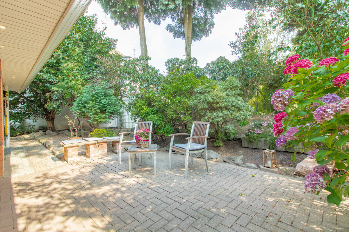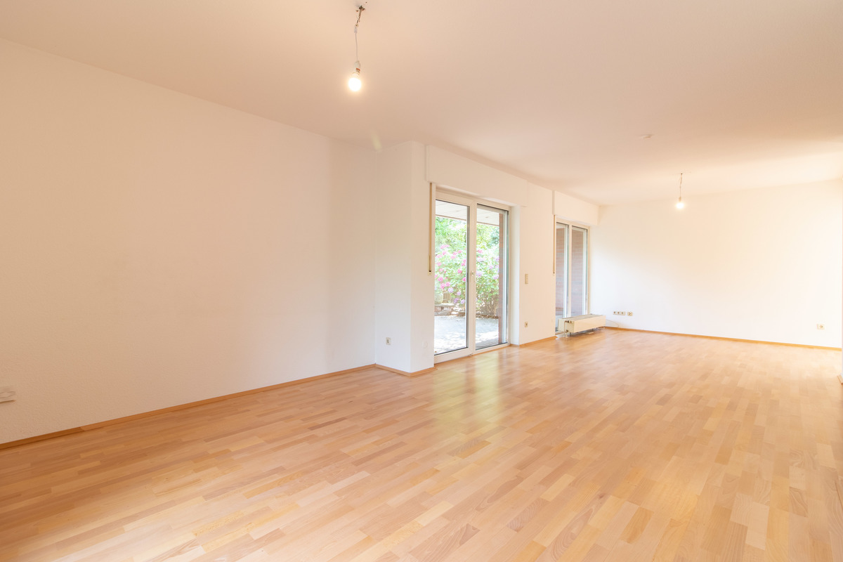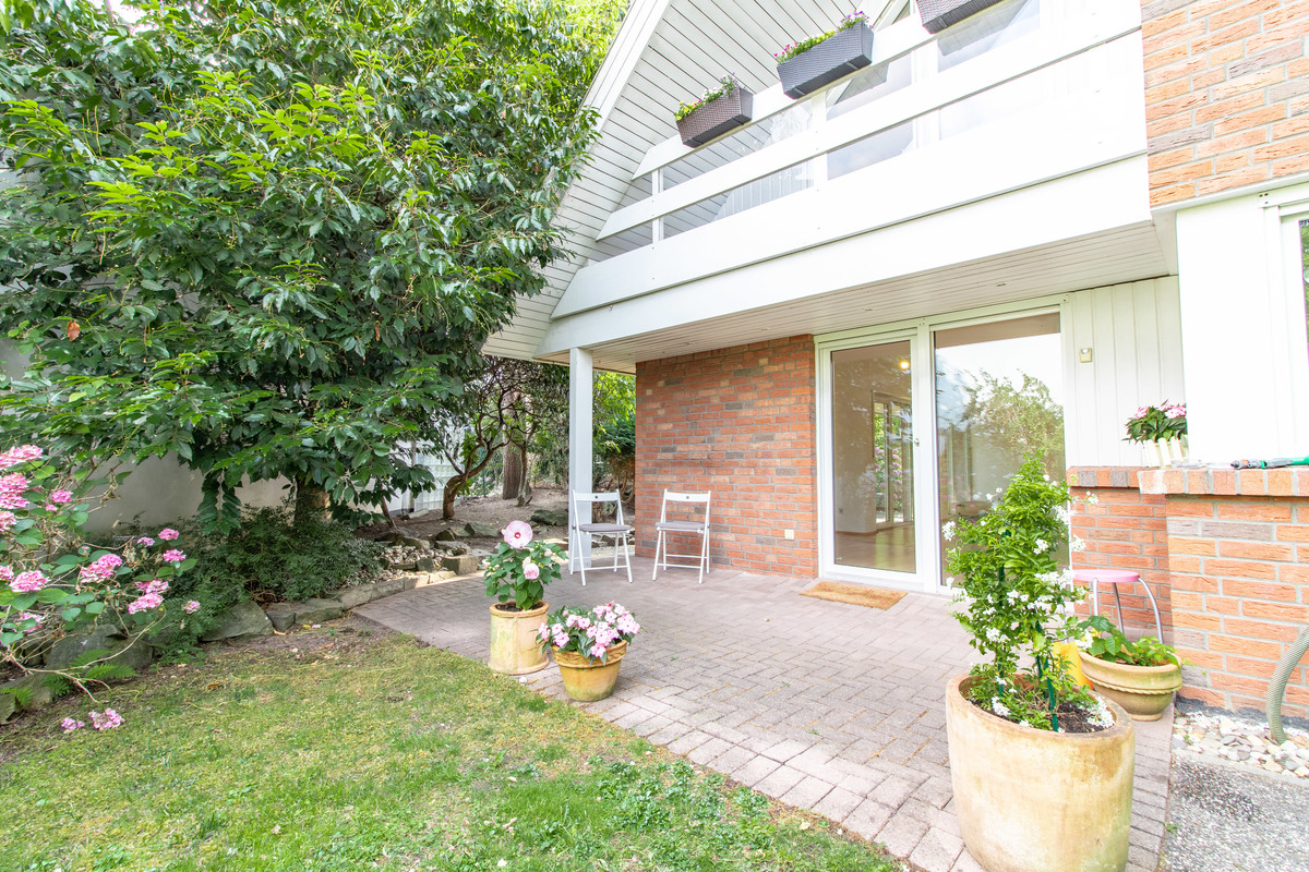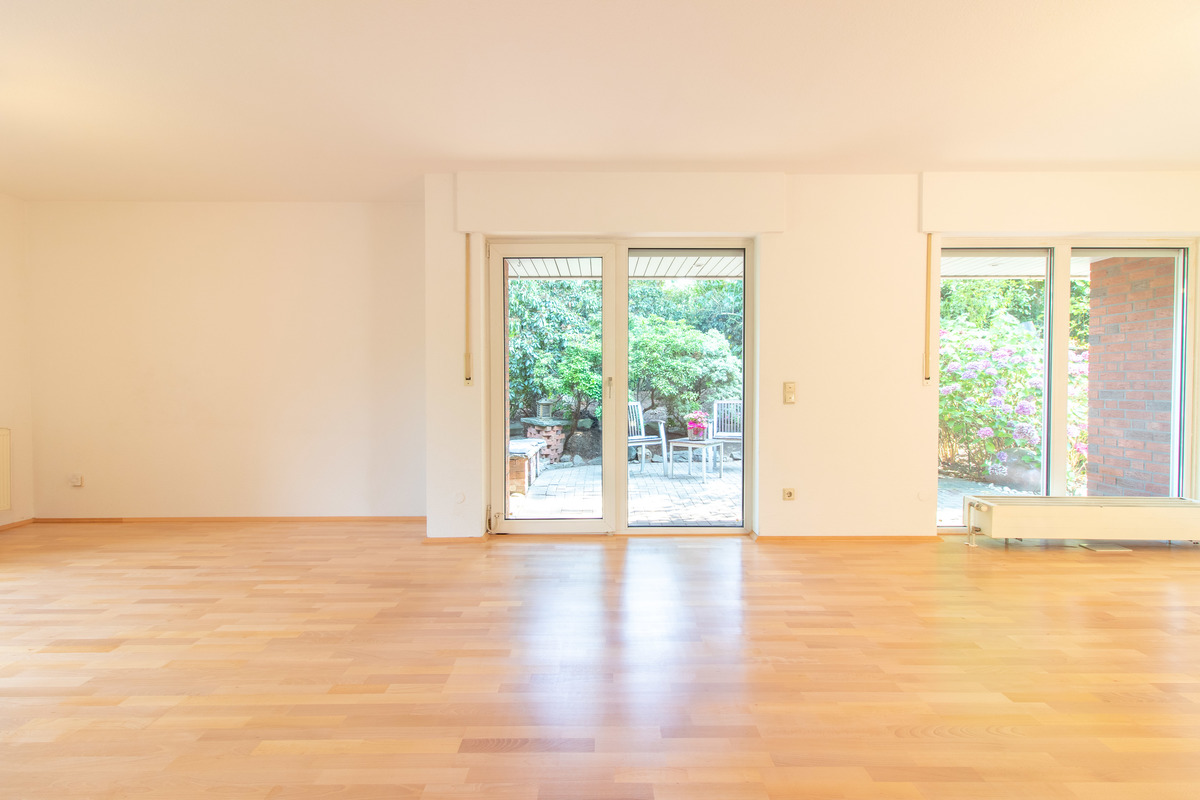 Der unmittelbare Zugang zu zwei Terrassen und einem schönen Garten wird ebenfalls über das sehr geräumige und großzügig geschnittene Wohnzimmer gewährleistet.