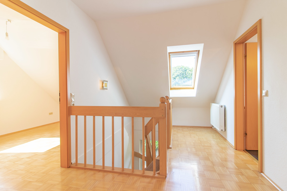 Auch das Obergeschoss der Immobilie ist mit einem sehr gepflegten Parkettboden ausgestattet.