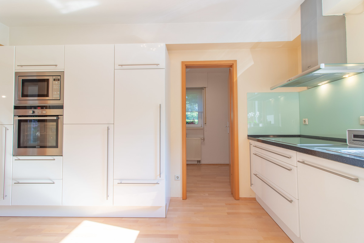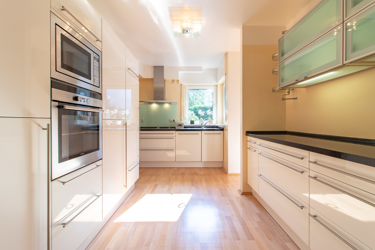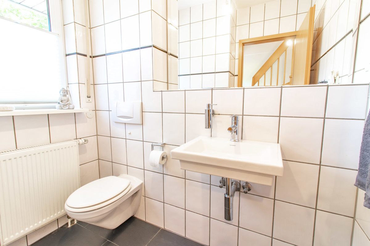 Mit einem hochwertigem Parkettboden im gesamtem Bereich des Erdgeschosses, großen Fensterflächen, einem Gäste WC mit Fenster, einem großen Wohnzimmer sowie einer Küche ist das Erdgeschoss wirklich sehr attraktiv gestaltet. Des Weiteren bietet ein separater Hauswirtschaftsraum, welcher neben der Küche liegt, die Möglichkeit Wäsche zu waschen, zum Bügeln und die täglichen Dinge des Lebens ohne großes Treppensteigen zu erledigen.