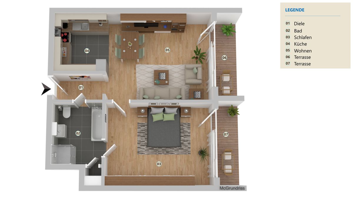 Aufgrund von Konzeption und Größe eignet sich das Objekt optimal für Paare oder Singles mit erhöhtem Platzbedarf.