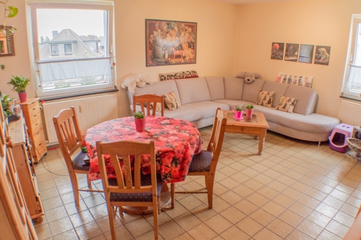 Die Wohnfläche beläuft sich auf ca. 72 m² und ist in zwei Schlafräume, ein großes Wohnzimmer, sowie eine Küche mit kleinem Essbereich, einer Diele und ein Tageslicht-Badezimmer unterteilt. Die Räume sind alle von der Diele aus begehbar. Beheizt wird die Wohnung durch eine Gas-Zentralheizung.