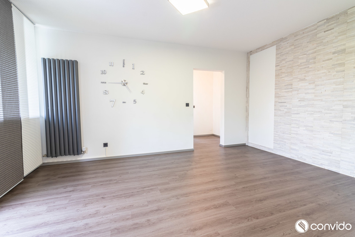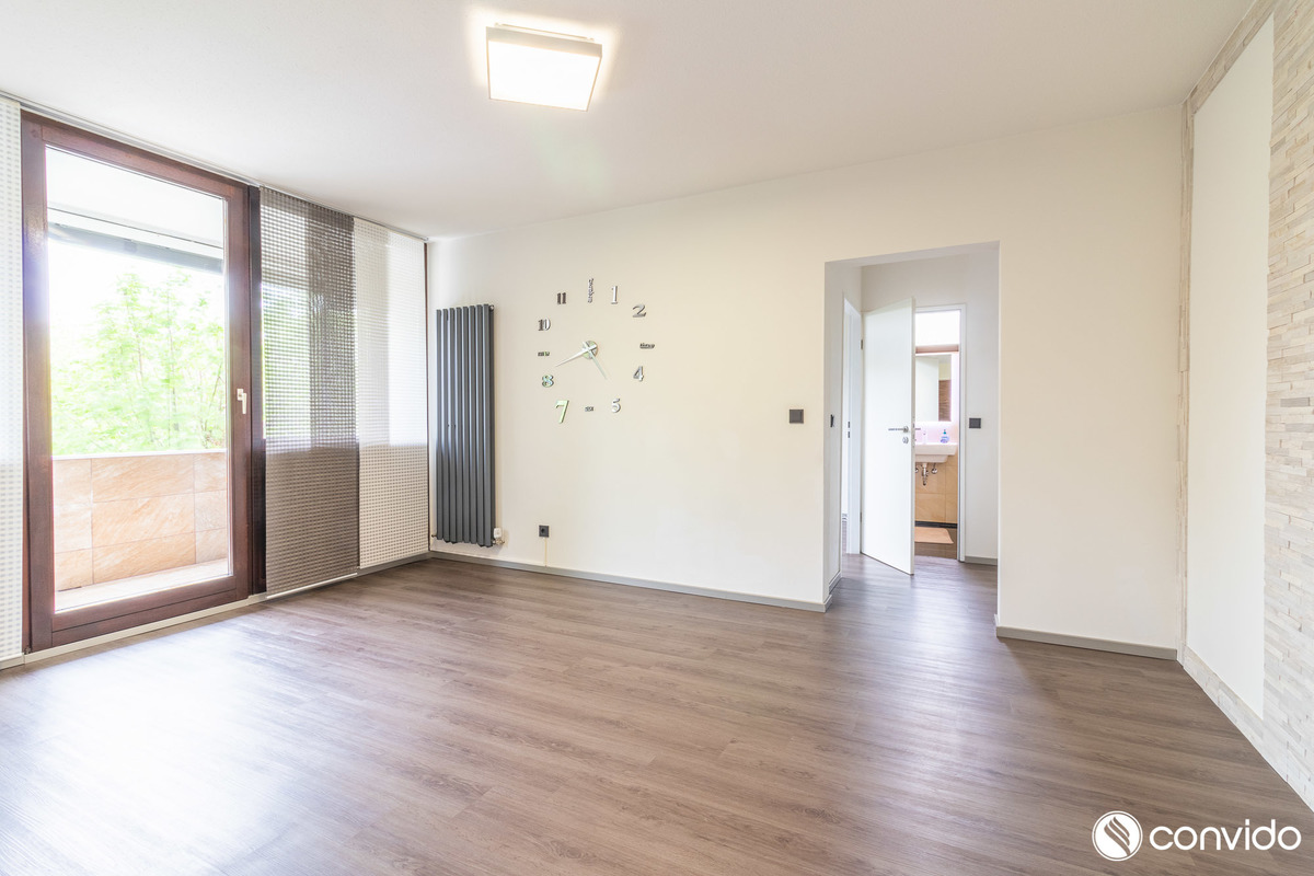 Das Herz dieser gemütlichen Wohnung ist das Wohnzimmer, mit Zugang zum Balkon. Der Balkon verfügt über eine elektrische Jalousien. Ebenfalls vom Wohnzimmer gelangt man in die Küche. Im hinteren Teil der Wohnung liegt das Schlafzimmer und das moderne Badezimmer.