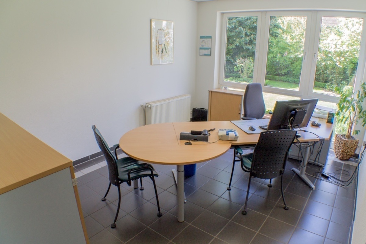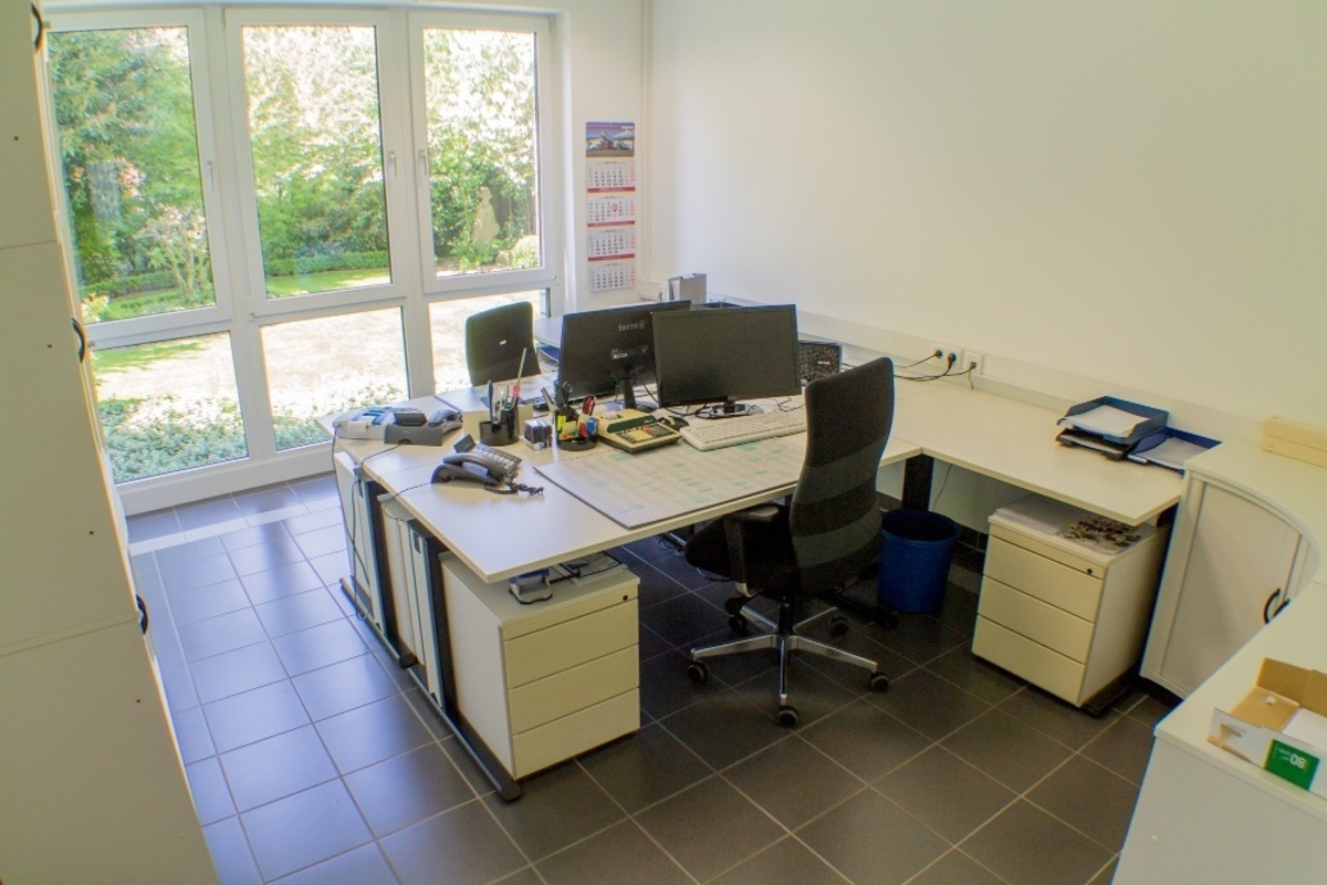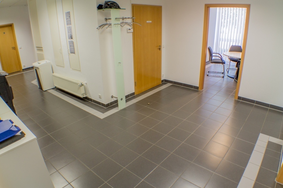 Über den in Marmoroptik gefliesten Hausflur, gelangen Sie direkt in den Anmeldebereich des Büros. Die Böden der Gewerbefläche sind hochwertig gefliest und somit sehr abnutzungsresistent, die bodentiefe Isolierverglasung sorgt in allen Räumen für natürliches Licht. Die Bäder verfügen jeweils über ein WC und ein Handwaschbecken. An den hinteren Teil des Gebäudes schließt sich ein Garten an, welcher von den Bewohnern gemeinschaftlich genutzt werden kann.