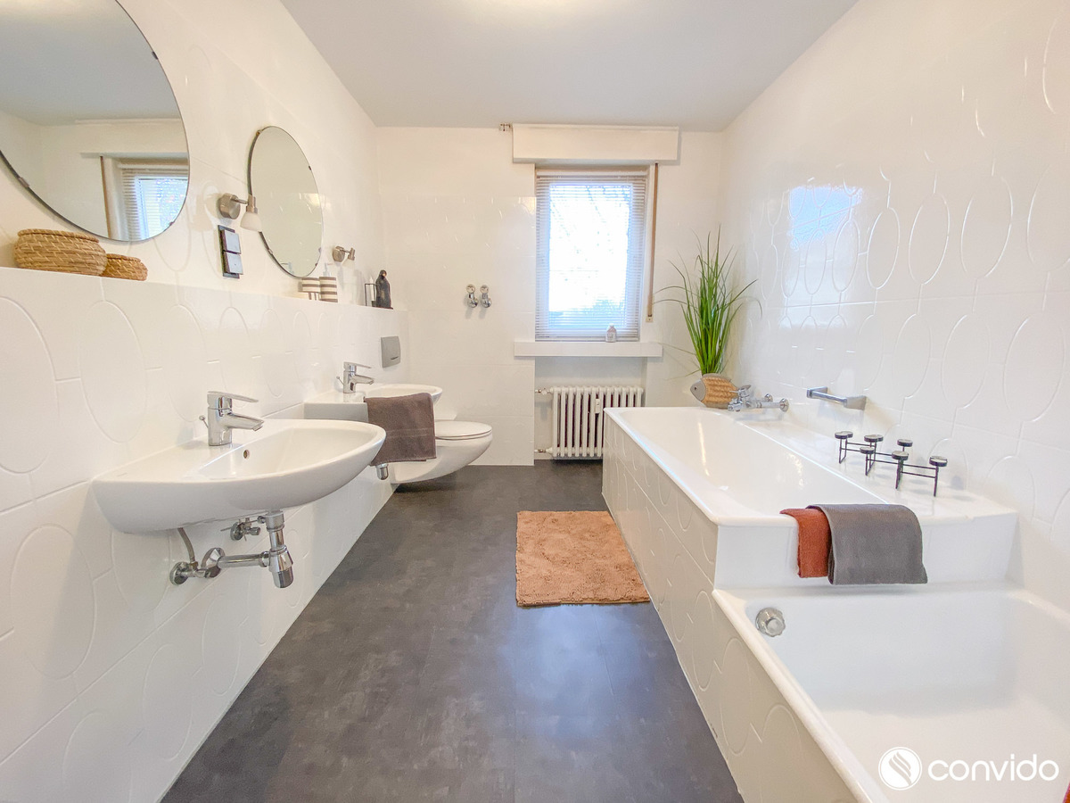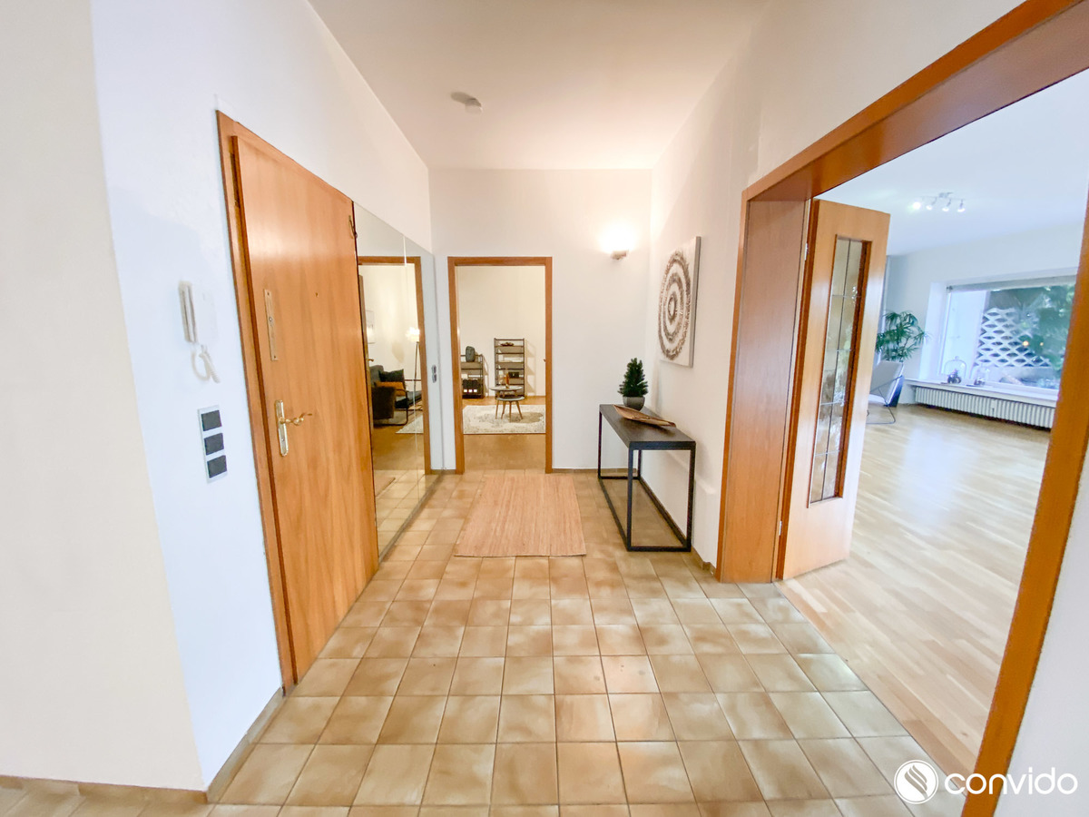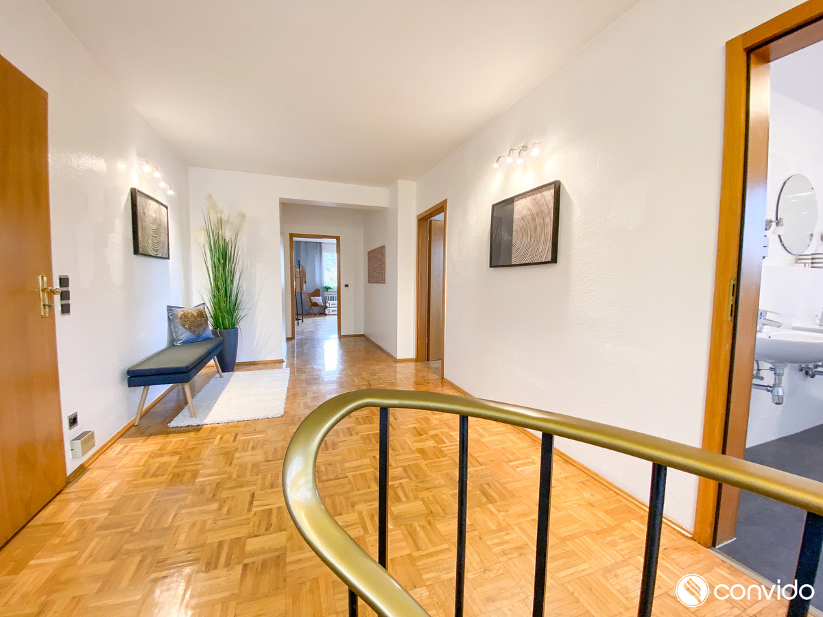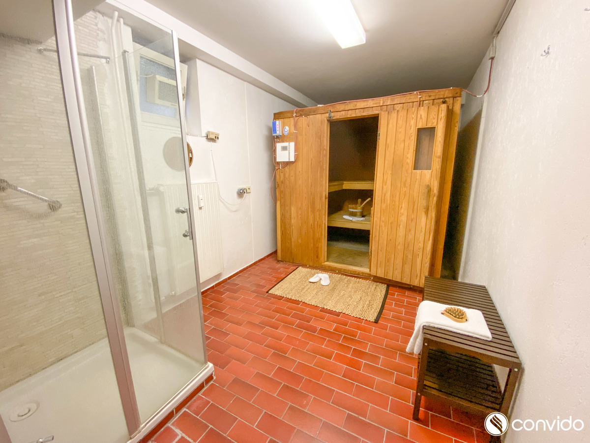 Die 4-Zimmer-Maisonette-Wohnung auf einer Fläche von ca. 160 m² ist ein Sinnbild der Behaglichkeit. Durch eine außergewöhnliche offene Konzeption, den wohldurchdachten Grundriss und die hochwertige Ausstattung bringt sie den Begriff Wohlfühlambiente auf eine völlig neue Ebene. Als kommunikativer Mittelpunkt des Appartements hebt sich das breite Wohn-/Esszimmer mit angrenzender Küche hervor. Große Fensterfronten und der Terrassenzugang versprechen optimale Lichtverhältnisse, während der harmonische Parkettboden ein gemütliches Ambiente generiert. An schönen Tagen lädt der idyllische Außenbereich mit Blick auf den Garten zu erholsamen Stunden im Freien ein. Neben zwei Tageslichtbädern auf jeder Wohnetage hält das Untergeschoss mit einem eigenen Pool sowie einer Sauna weitere Wellness-Highlights bereit. Zusätzlich zu klassischen Abstellflächen und einer Waschküche findet sich hier auch ein Partykeller inklusive Bar.