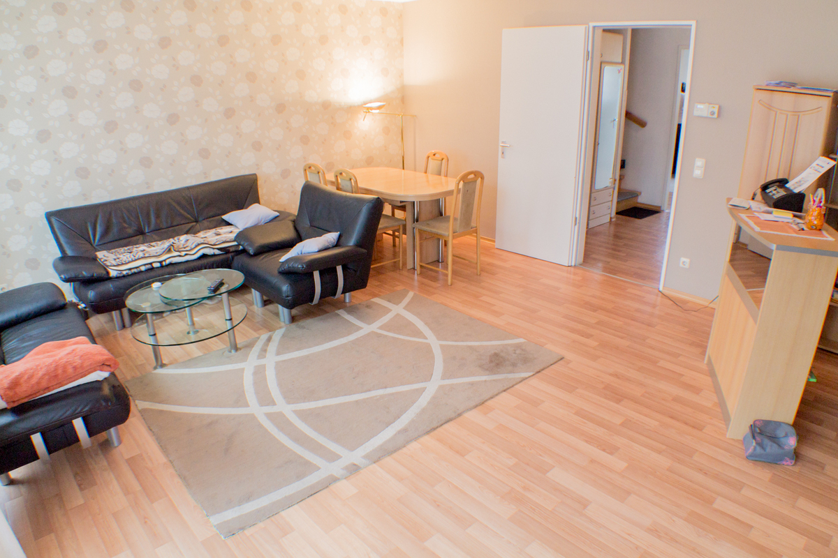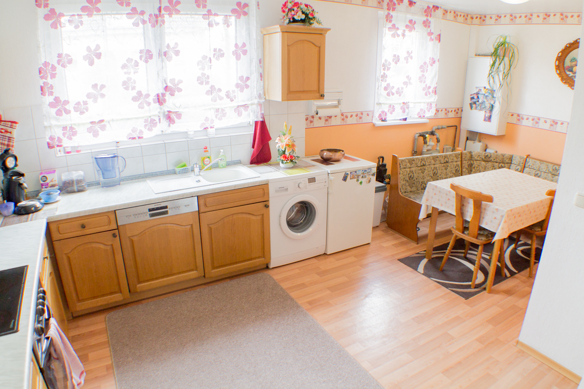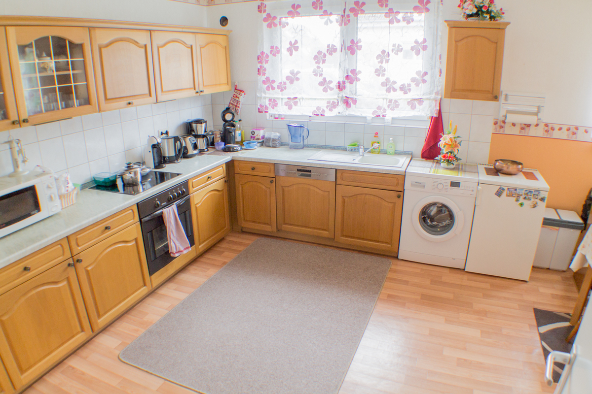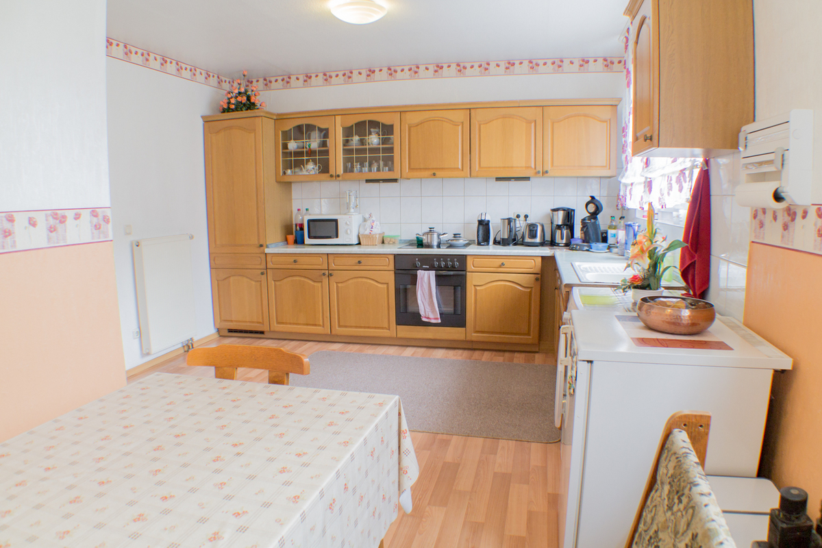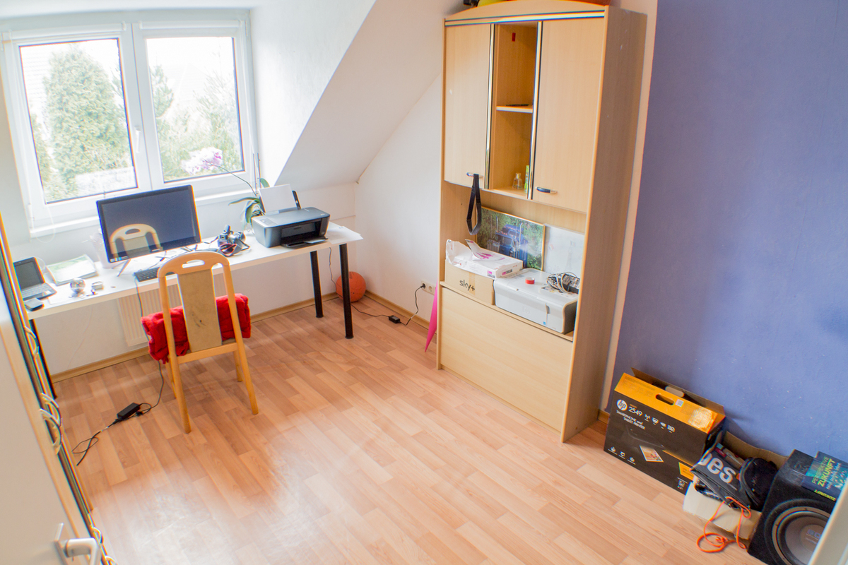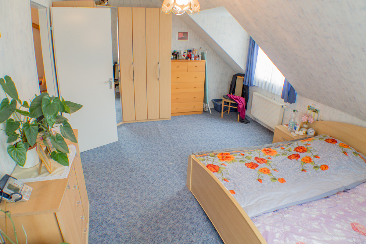 Im Erdgeschoss des Hauses befindet sich eine geräumige Küche, das Wohnzimmer, von dem Sie den Garten aus betreten können, und ein modernes Gäste-WC. In der 1. Etage befinden sich drei Schlafzimmer und das Badezimmer mit Tageslicht. Im ausgebauten Spitzenboden könnte ideal ein Arbeitsplatz errichtet werden.