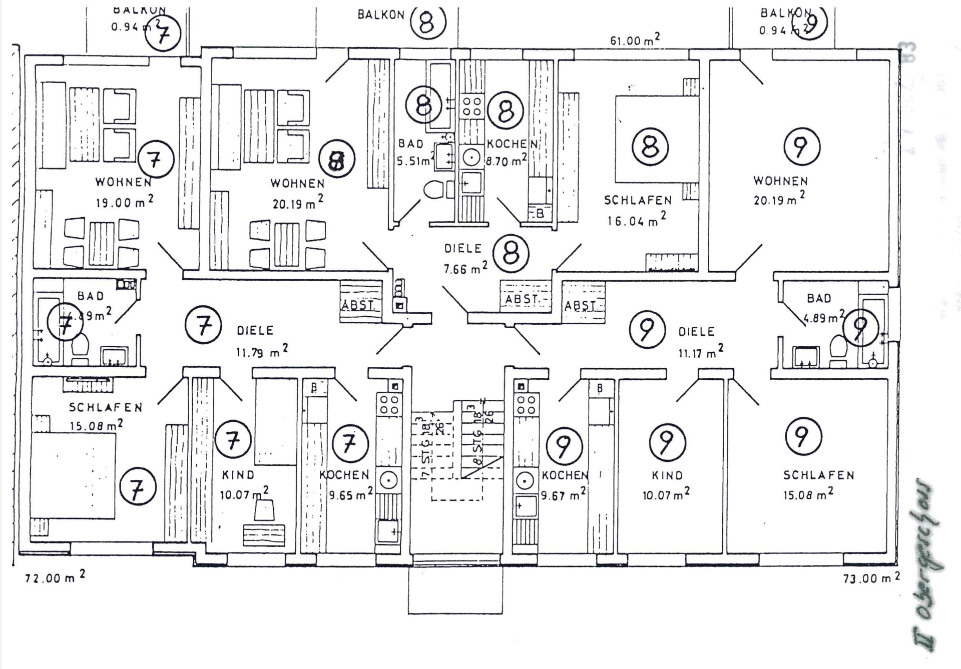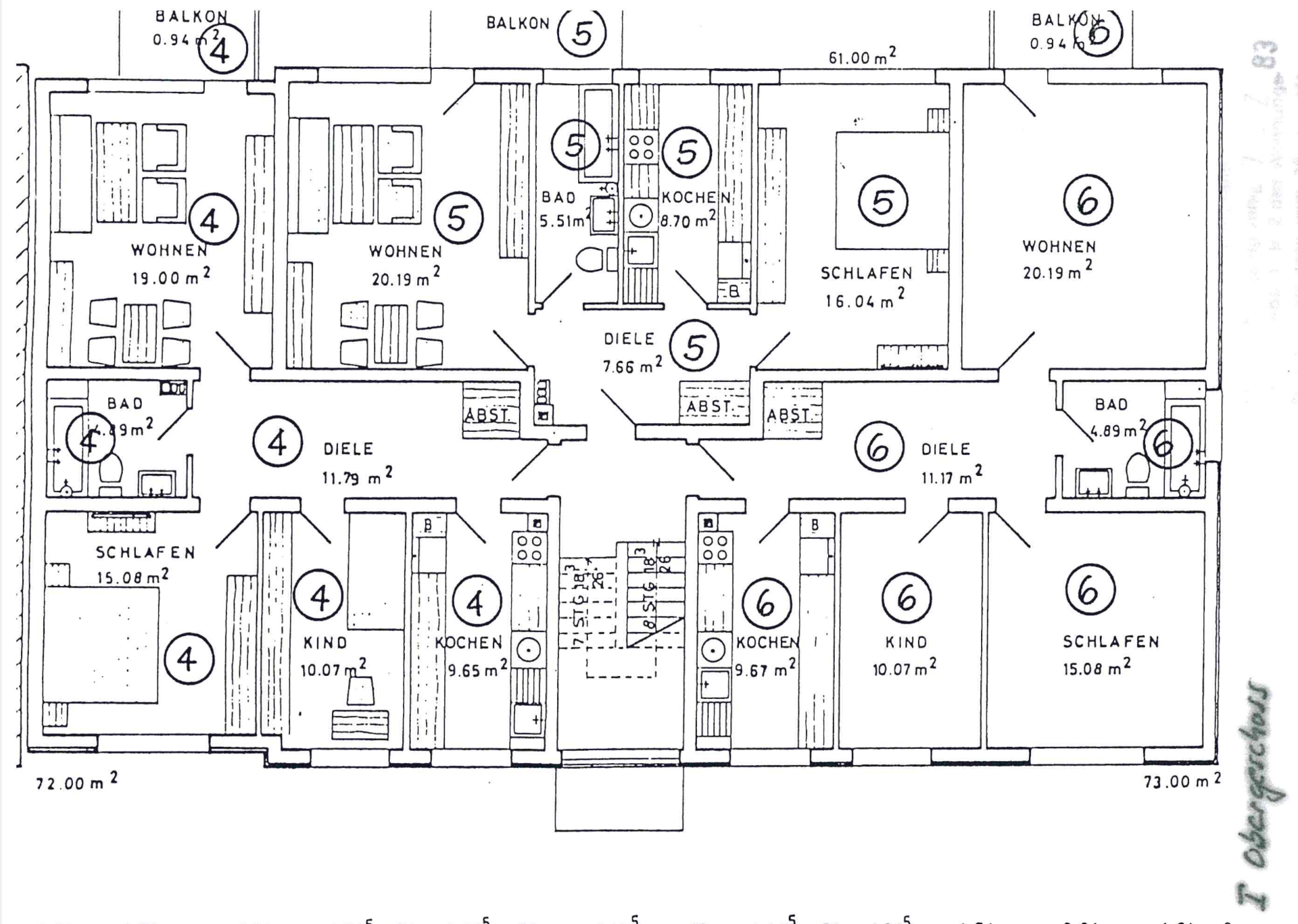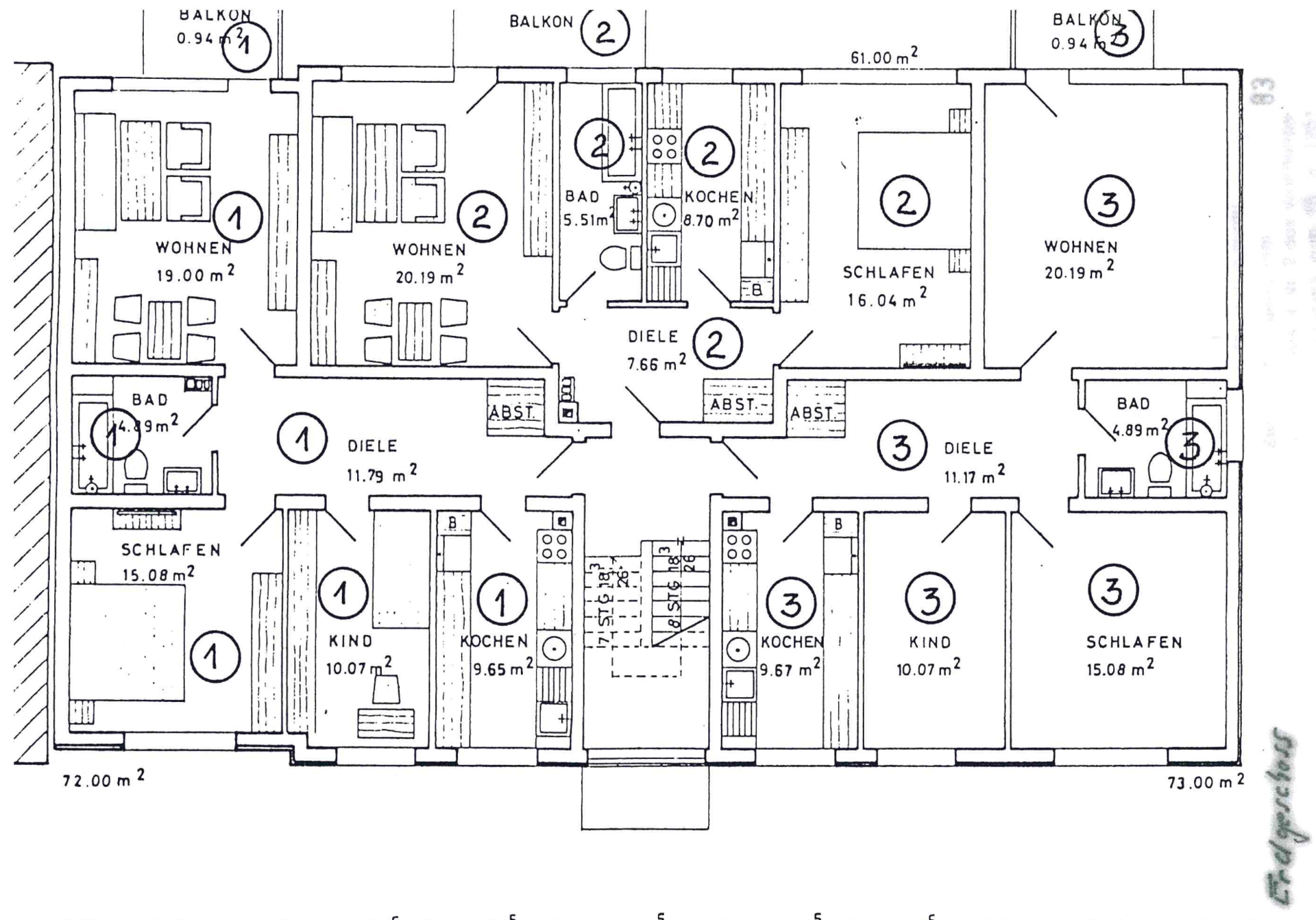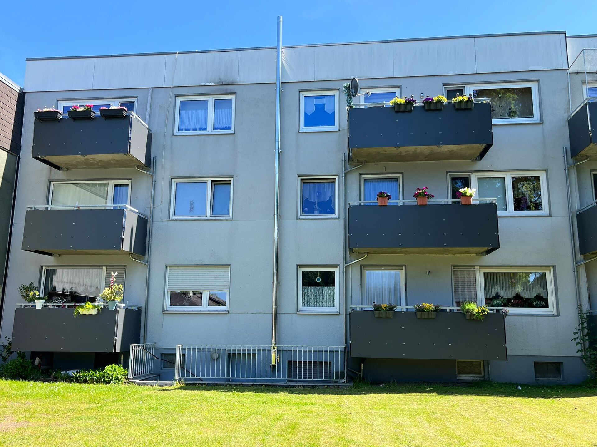 Dieses Mehrfamilienhaus wurde 1973 auf einem ca. 980 qm großen Grundstück erbaut und verfügt über 9 Wohneinheiten. Das Haus hat eine Wohnfläche von ca. 618 qm und verfügt pro Wohneinheit über einen Kellerraum. Hinter dem Haus kann der Gemeinschaftsgarten von allen Mietern genutzt werden. Zwei abgetrennte Bereiche des Garten sind zwei Mietern aus dem Haus zugesprochen worden. Erst kürzlich wurden in dem Haus die Balkone instandgesetzt, die Heizungsanlage erneuert (2014), sowie die Fenster in einigen Wohnungen ausgetauscht. Im Zuge eines Mieterwechsels wurden die Bäder teilweise erneuert.
