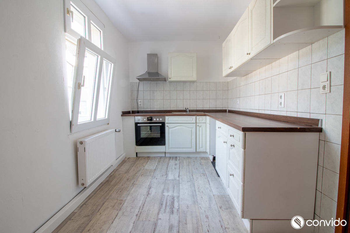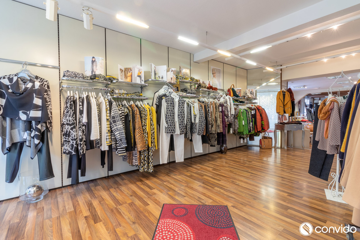 Im Erdgeschoss des Mehrfamilienhauses sind zwei Ladenlokale – eine Modeboutique und ein Schreibenwarenhandel – niedergelassen. Große Schaufensterfronten bedienen den Anspruch von Laufkundschaft und generieren optimale Lichtverhältnisse im Inneren. Die erste Etage fasst drei 2-Zimmer-Wohnungen mit einer Fläche von jeweils ca. 44,35 m², 47,82 m² und 62,60 m². Weiterhin erstreckt sich im Dachgeschoss auf