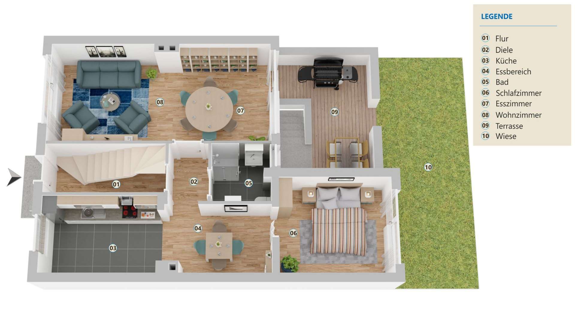 Das Grundstück ist im Kaufpreis enthalten und ist kein Erbpachtgrundstück.