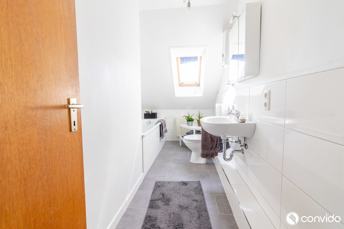 Die Wohnung bettet sich in die vierte Etage (Dachgeschoss) eines 1953 errichteten Mehrfamilienhauses mit insgesamt 8 Parteien. Infolge konstanter Instandhaltungsmaßnahmen und grundlegenden Sorgfalt befindet sich das Gebäude in einem gut gepflegten Zustand. Gleiches lässt sich auf die Dachgeschosswohnung übertragen. Im Rahmen kürzlich durchgeführter Modernisierungsarbeiten wurde unter anderem das Badezimmer vollständig erneuert. Die Wohnung hat zudem eine neue Küche intrigiert.