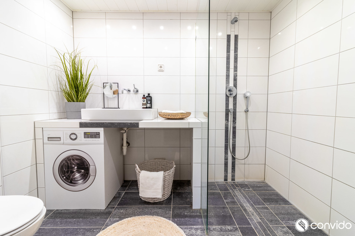 Die Wohnung hat gerade einen frischen Anstrich bekommen. Das moderne, ebenerdige Duschbad bietet auch genug Stauraum für die Waschmaschine und einen Trockner. Dementsprechend können sich die künftigen Eigentümer auf einen bezugsbereiten, modernen Wohn(t)raum freuen, der keine weiteren Investitionen fordert.