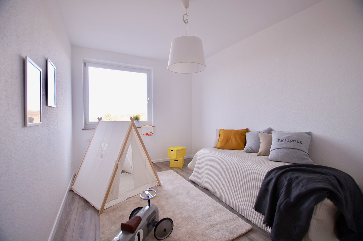 Das große Schlafzimmer bietet sehr viel Platz für Kleiderschränke. Die beiden weiteren Zimmer sind ideal geeignet als Kinderzimmer oder Büro/Hobbyraum.