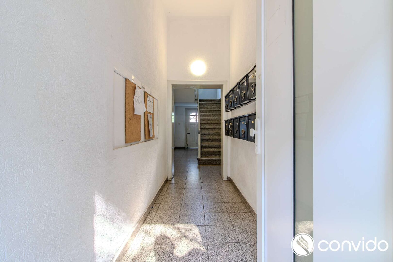 Die vorhandenen Unterlagen und Abbildungen zeigen einen insgesamt ordentlichen und funktionalen Eindruck der Gemeinschaftsbereiche. Der Eingangsbereich und das Treppenhaus präsentieren sich gepflegt und vermitteln einen soliden Gesamteindruck – ein wichtiger Aspekt für die Wahrnehmung durch Mieter und damit auch für die nachhaltige Positionierung am Vermietungsmarkt. Außen ergänzt ein rückwärtiger Garagenhof das Angebot. Gerade solche zusätzlichen Stell- bzw. Garagenflächen sind aus Investorensicht ein relevanter Mehrwert, da sie die Alltagstauglichkeit für Nutzer erhöhen und die Attraktivität des Gesamtobjekts im Vermietungskontext stärken können.