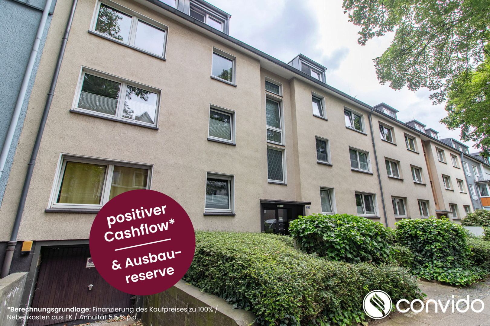 In unmittelbarer Nähe zum Zentrum von Essen befindet sich dieses gepflegte Mehrfamilienhaus auf einem 534 m² großen Grundstück. Das Haus verfügt über eine Gesamtwohnfläche von 610,90 m² und ist vollständig vermietet.